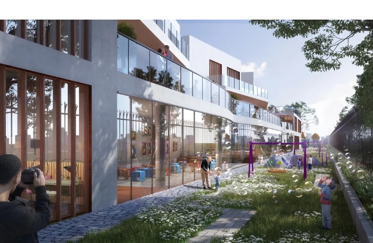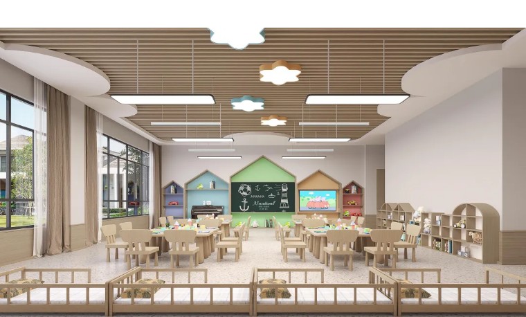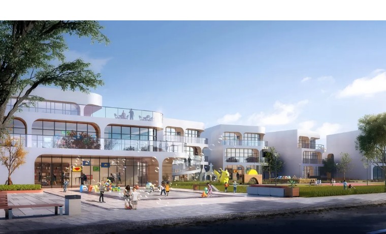 本社区配套幼儿园占地5045㎡,按9班规模规划,配备活动室、寝室、音体室及特色教室。空间布局合理,流线独立不交叉,保障安全且通行便捷,切实解决社区儿童就近入园问题,为学前教育提供良好场所。