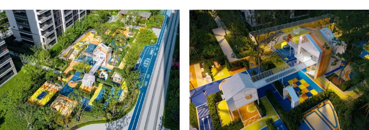 项目结合消防登高面,在高层住宅区域打造多处集中休闲活动广场,作为住户茶余饭后娱乐健身的主要场地;健康跑道与社区生态景观融合,满足全龄化运动需求,创造互动式乐跑体验,让人在鲜氧环境中畅享健康未来。
