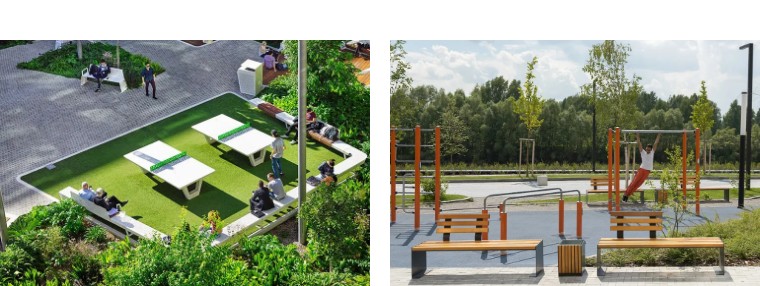 本案以环境均好性为住区规划重要取向,通过营造大尺度中心花园景观,打造公园里的生活环境。中央景观设大面积草坪,可开展周末跳蚤市场、产品推广等社区活动,同时为社区“未来创业场景”提供相应场地。