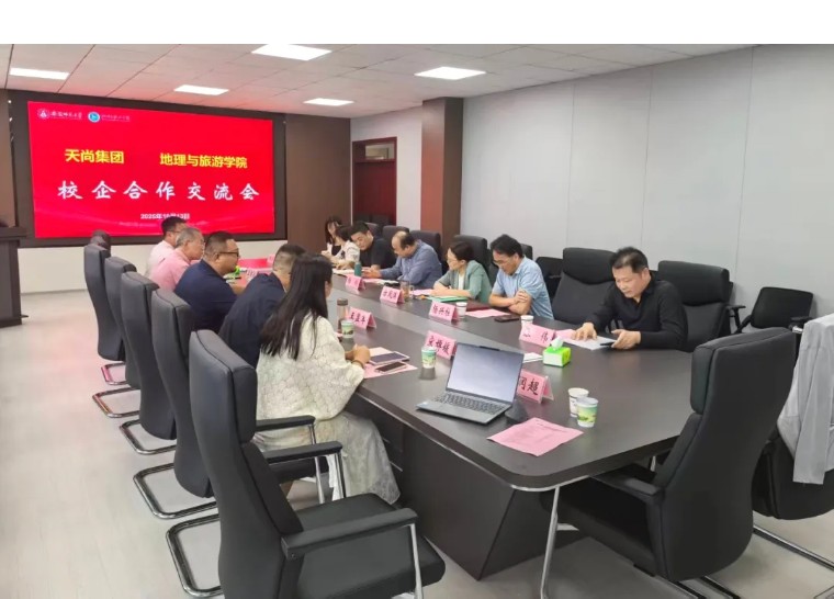 会议伊始,地旅学院副院长杨兴柱发表致辞。他指出,高校与企业的合作是推动教育链、人才链与产业链、创新链精准对接的关键纽带。从高校层面而言,需加强与社会的联结以更好地服务社会发展;从企业层面来看,同样需要高校的智力支持与人才供给。此次天尚集团一行到访交流,为双方搭建了优质的合作沟通平台,期待通过深度对话实现资源共享、互利共赢,共同为文旅产业与乡村振兴事业助力。