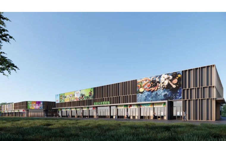 该区块分两个地块建设,总用地6155.44㎡,设摊位、商铺、办公区,建筑风格简洁古朴,既满足村民日常购物,又向游客展示瑶家特产。