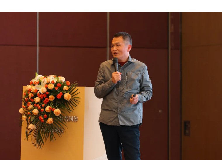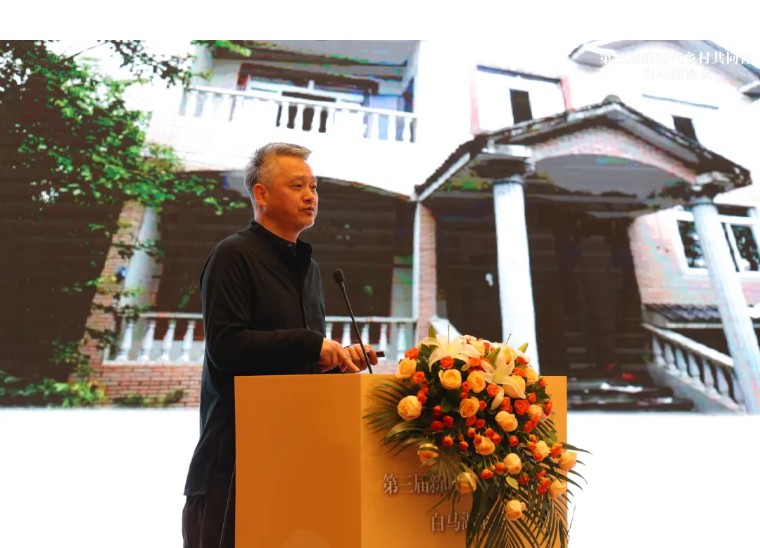 图丨中国美术学院望境创意发展有限公司董事长、浙江省乡村建设促进会副会长余伟忠以《艺术乡建赋能组团发展》为题作专题演讲
