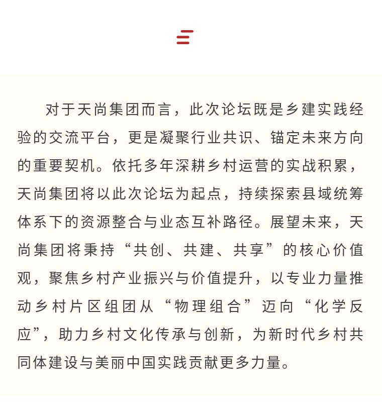 论坛最终凝聚了广泛共识:乡村片区组团绝非地理层面的简单联合,而是一场深刻的系统性变革,必须精准认识其发展规律,以系统谋划引领、以机制创新联结、以要素统筹保障,构建资源共享、产业共促、文化共融的可持续发展共同体。在实践中,应积极推动从“联合体”向“共同体”的演进,逐步实现从资源整合的“塑形”阶段,迈向文化认同与情感共鸣的“铸魂”阶段,最终形成强村带弱村、先富带后富、区域协调共进的良好格局。与此同时,应充分发挥艺术乡建的催化作用,美化乡村环境、激活沉睡资源,为乡村发展注入持久的人文魅力、内生动力与创新活力。