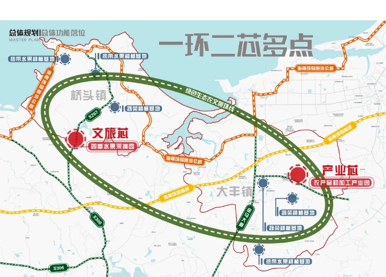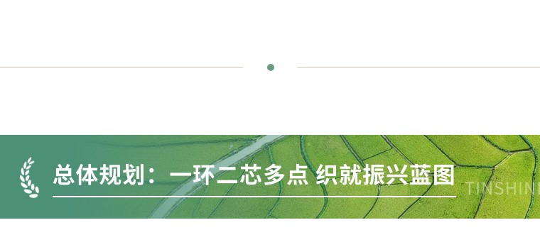 项目遵循“农业筑底、数智赋能、文旅驱动”三大路径,构建“一环二芯多点”的空间结构,形成“文旅芯”与“产业芯”双核联动、多点支撑的发展格局。