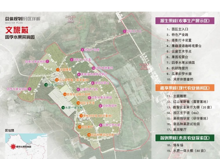 文旅芯以红山农场为核心区域,涵盖“源生果核、趣享果核、智创果核”三大功能板块,实现农业生产、科技研发与文旅休闲的深度融合。