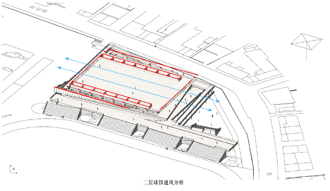 天尚设计集团和陈东华事务所联合打造的彭湃中学汉京体育中心,包含6道50米泳池、4道风雨跑道、风雨篮球场、风雨羽毛球场、风雨排球场、风雨乒乓球台以及室外羽毛球场,全方位满足学生运动健身需求,是目前全县中小学校中第一间大型综合性体育中心。体育馆根据亚热带气候特征,采用开放和架空空间的设计策略,泳池、跑道、球馆均为风雨场所,尽量利用自然通风与自然采光,减少机械通风采光的能耗;同时在必要的地方采用遮阳等手段,减少广东的炎热暴晒对体育馆的影响;以及在底层架空层和场地绿地引入亚热带丰富的植物类型,打造具有亚热带特征的空间。