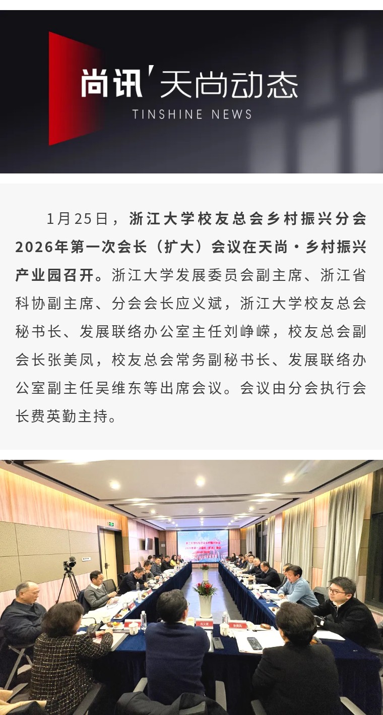 会议伊始,浙江大学校友总会乡村振兴分会副会长、天尚集团董事长鲍力致欢迎辞,并汇报了天尚深耕乡村振兴领域的实践工作。从乡村规划设计到运营投资,从单村运营到片区组团运营到县域赋能统筹运营,一路创新探索实践。天尚集团始终以浙大精神为指引,深耕乡村振兴赛道,全力配合校友总会乡村振兴分会工作,深化校企合作、校友联动,争创乡村振兴优秀案例。