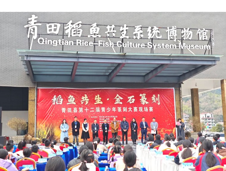 1月17日,“稻鱼共生 金石篆刻”青田县第二十届青少年篆刻大赛现场赛在方山乡青田稻鱼共生系统博物馆举行。