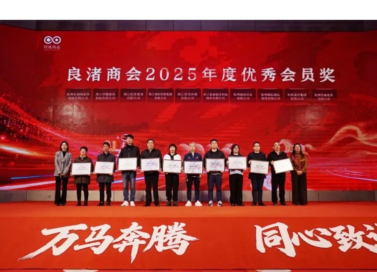 1月23日,良渚商会第五届四次会员大会暨2026良渚商会迎新年会隆重举行。大会现场揭晓了2025年度多项荣誉表彰,天尚设计集团凭借过硬实力、对良渚建设的深度赋能及社会责任担当,斩获“良渚商会2025年度优秀会员奖”。天尚设计集团总裁蔡辅奎代表集团登台领奖。