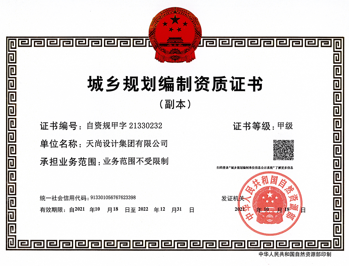 公路行业(公路)专业乙级;市政行业(道路工程)专业甲级;建筑行业(建筑工程)甲级;风景园林工程设计专项甲级